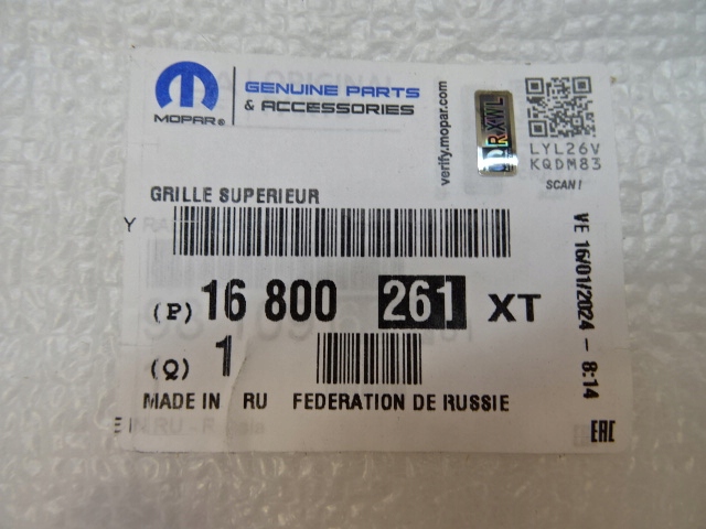 Каталожный номер детали: 16800261XT, 9810963880