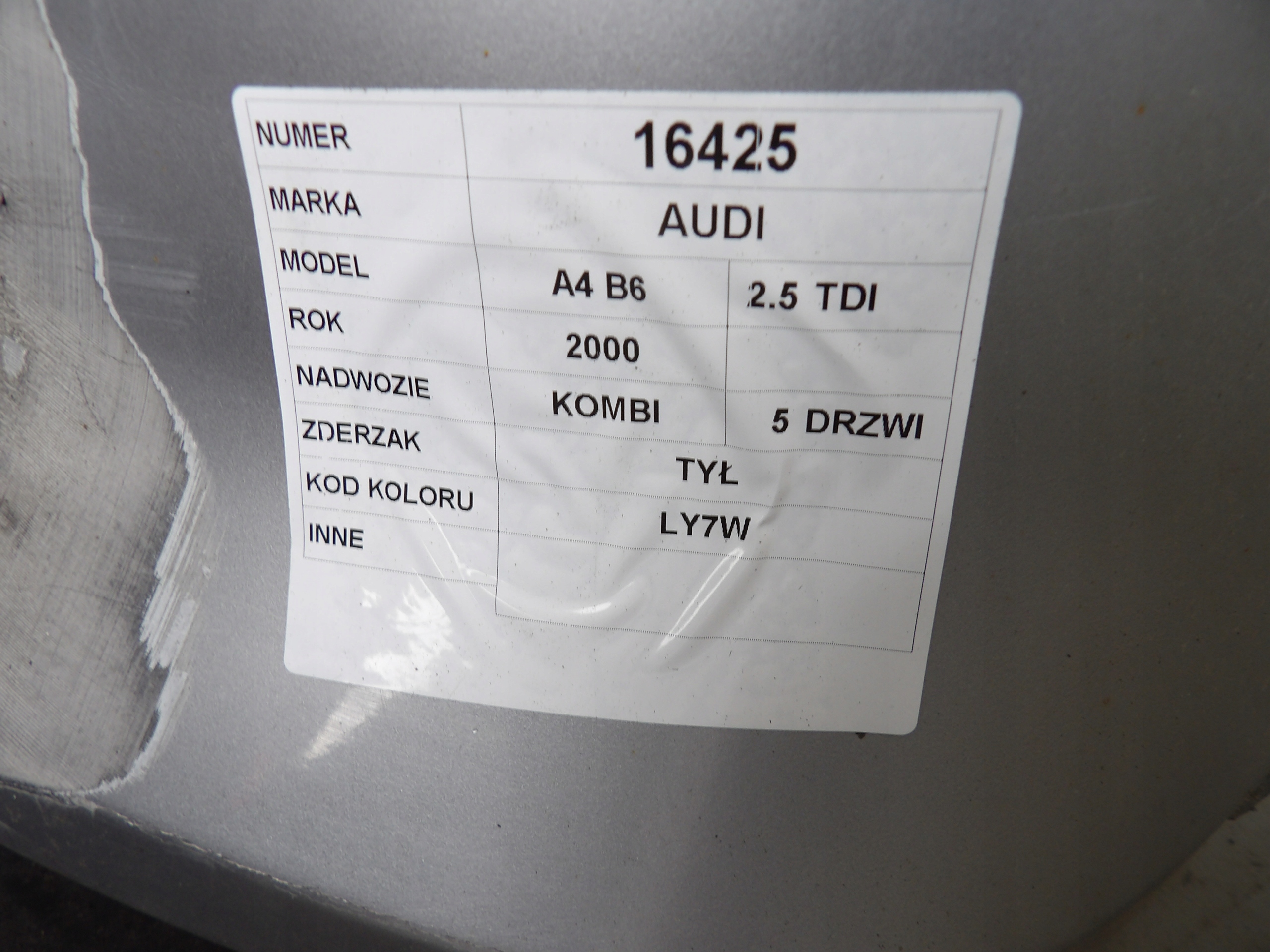 | Каталожный номер детали: | Audi A4 B6 zderzak T LY7W |