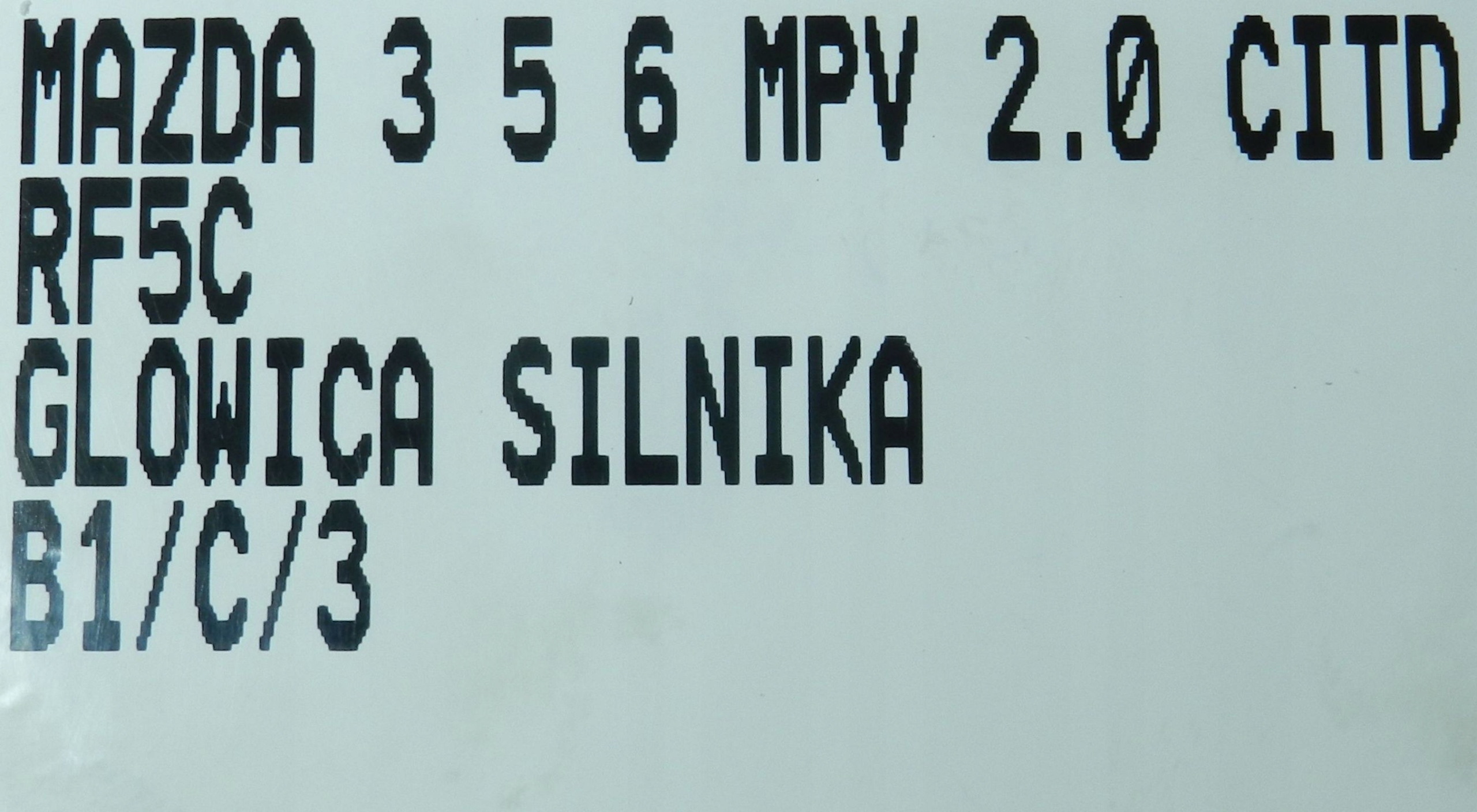| Каталожный номер детали: | GŁOWICA, SILNIKA, MAZDA, 5, 6, I, MPV, 2.0D, CITD, RF5C, RF7J |