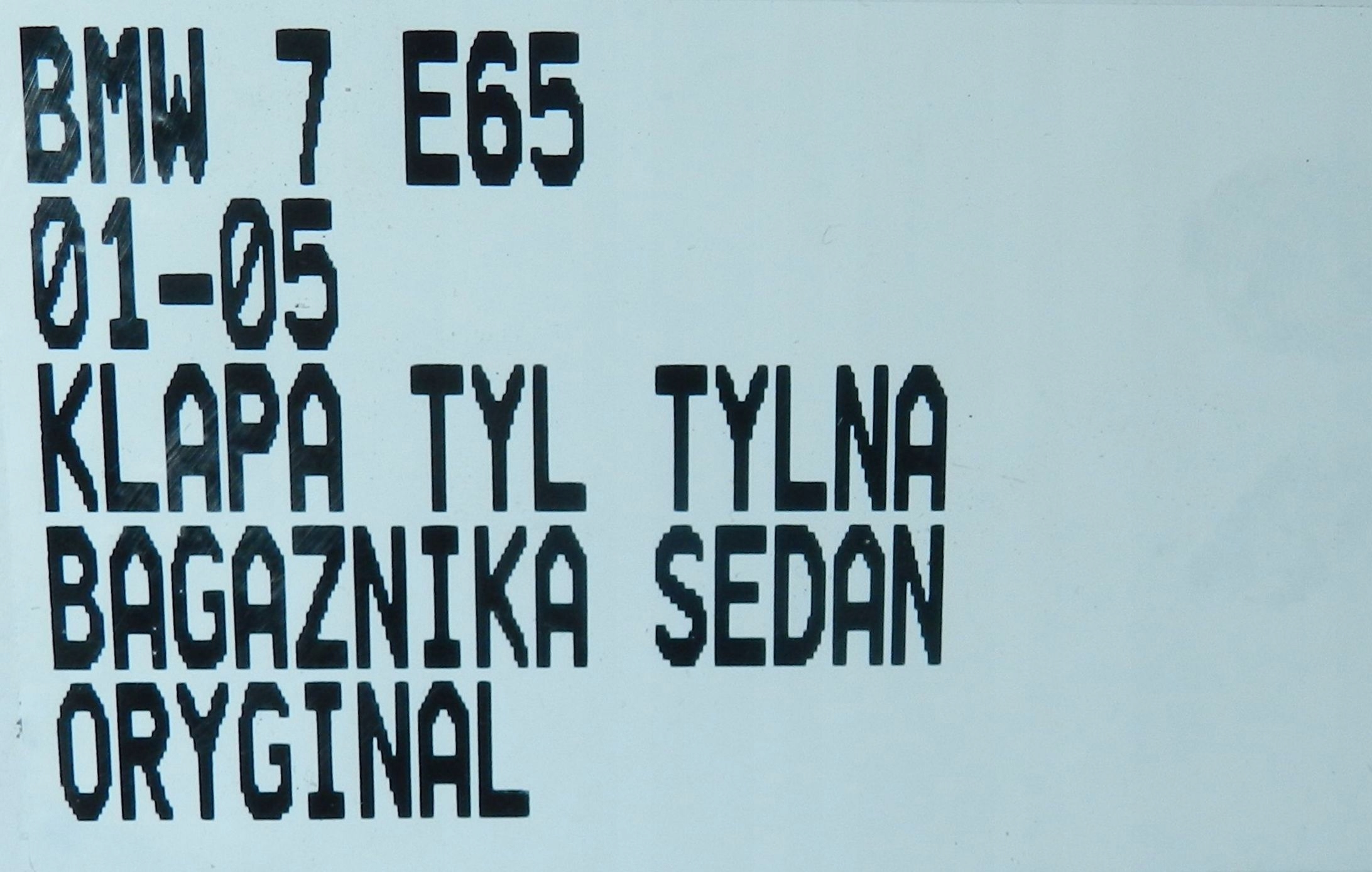 Каталожный номер детали: KLAPA BAGAŻNIKA TYŁ BMW SERIA 7 E65 01-05 SEDAN