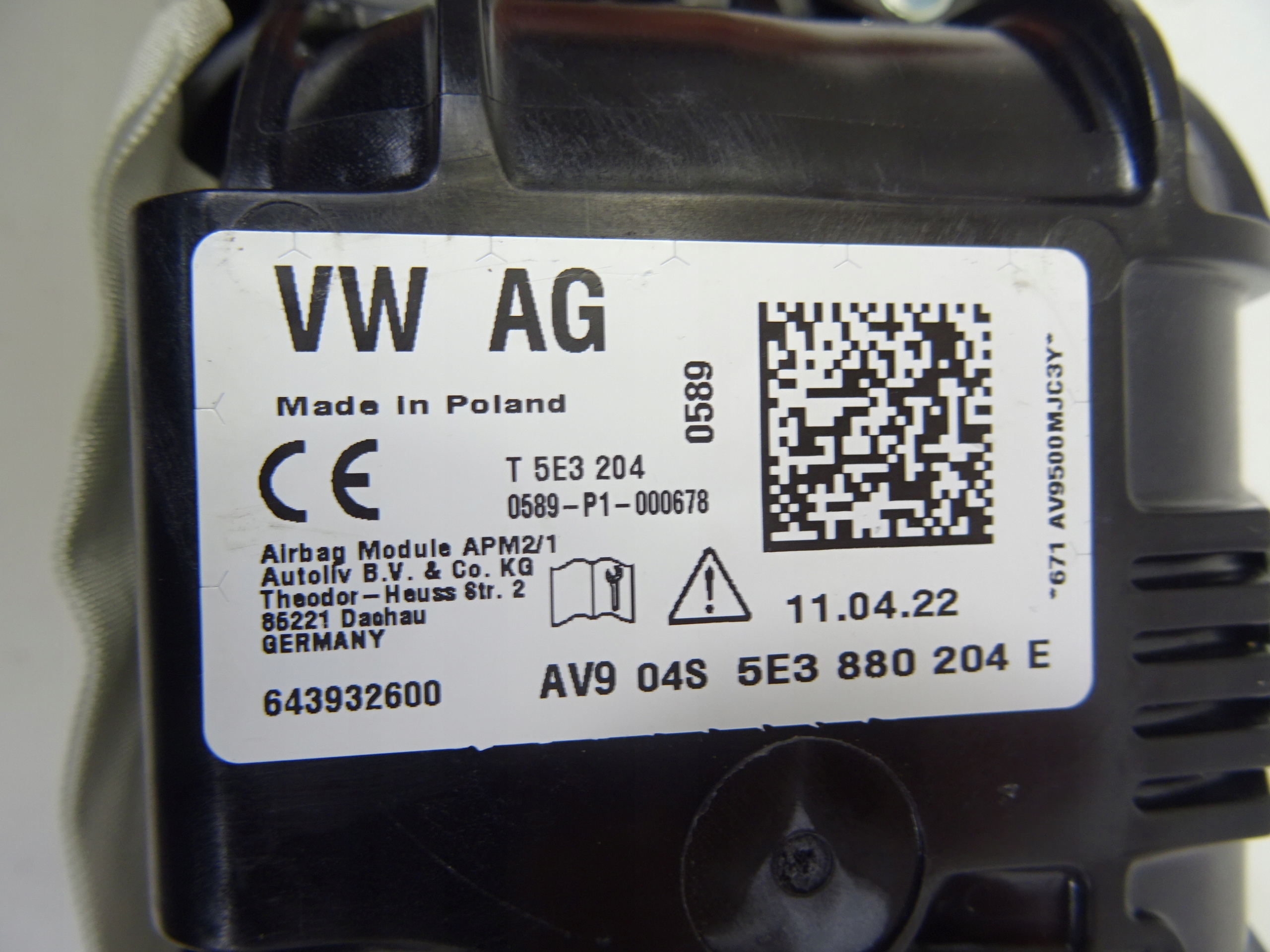 5e3880204e skoda octavia iv 4 подушка воздушная пассажира подушка безопасности oryg