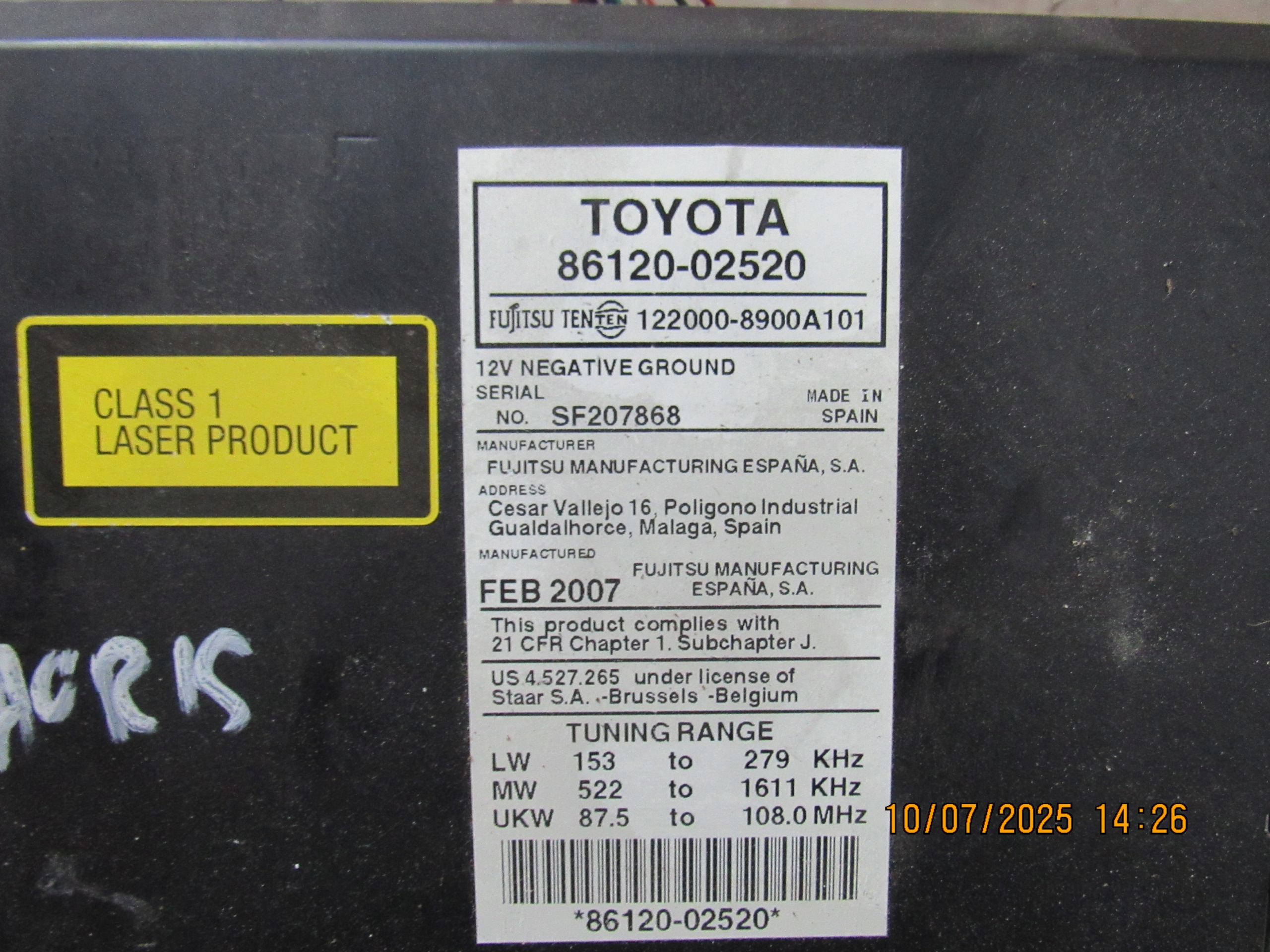 | Каталожный номер детали: | RADIO AURIS I 86120-02520 |