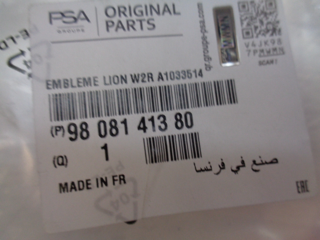 Каталожный номер детали: 9807631080, 98078737VD, 9808141380