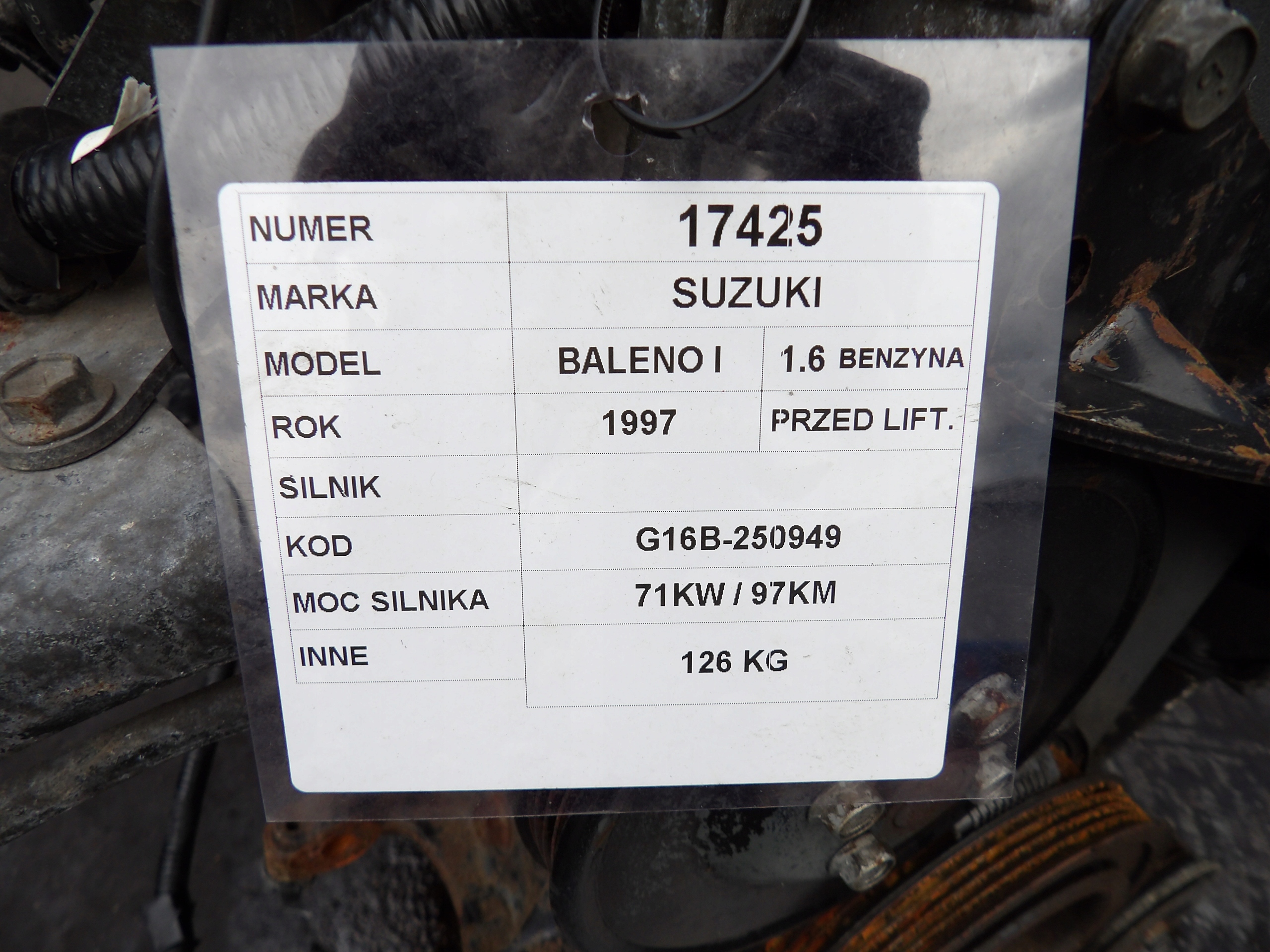 Suzuki baleno 1,6b 71kw 97km двигатель kompletny g16b