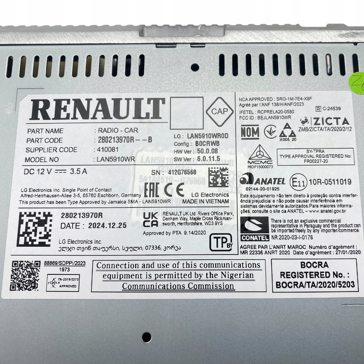 | Оригинальный каталожный номер: | 280213970R |
