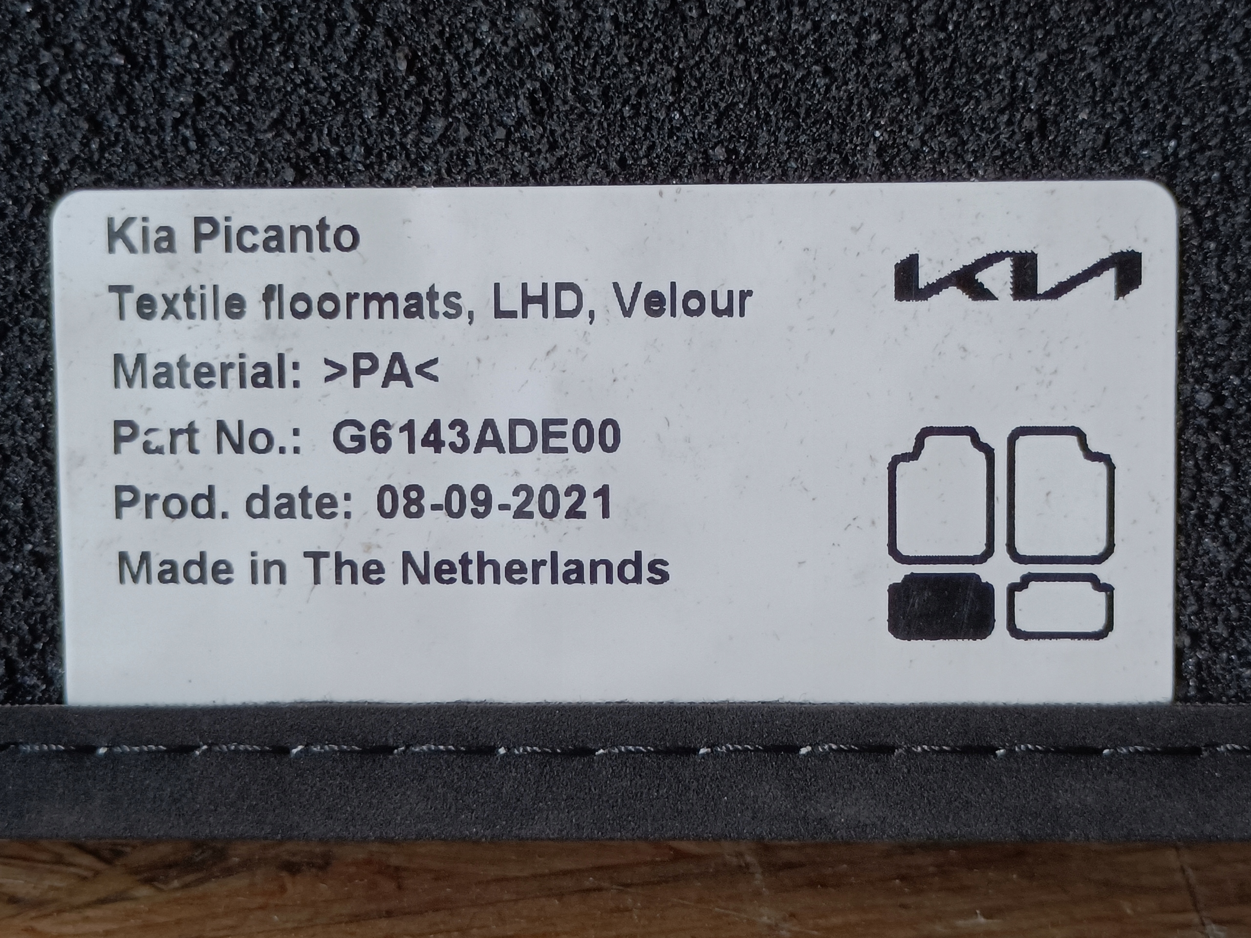 Kia picanto iii 17- коврики велюровые g6143ade00