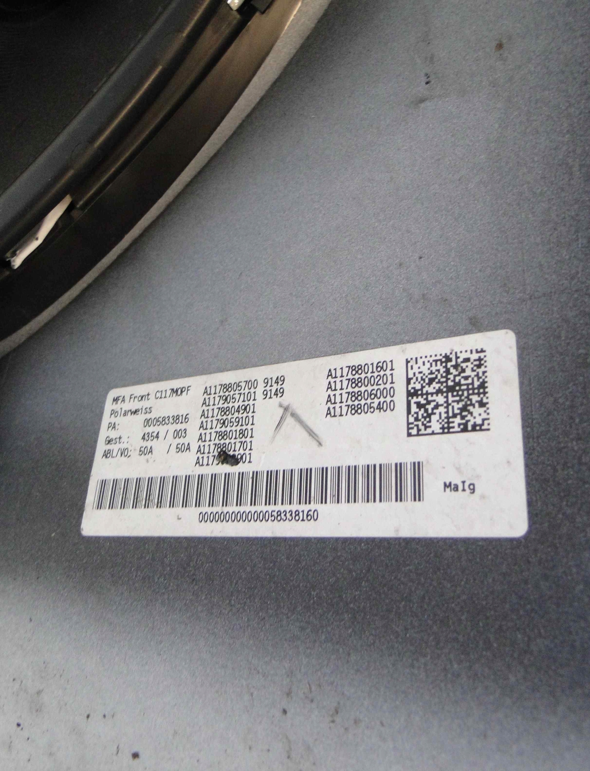 | Оригинальный каталожный номер: | A1178802301 |