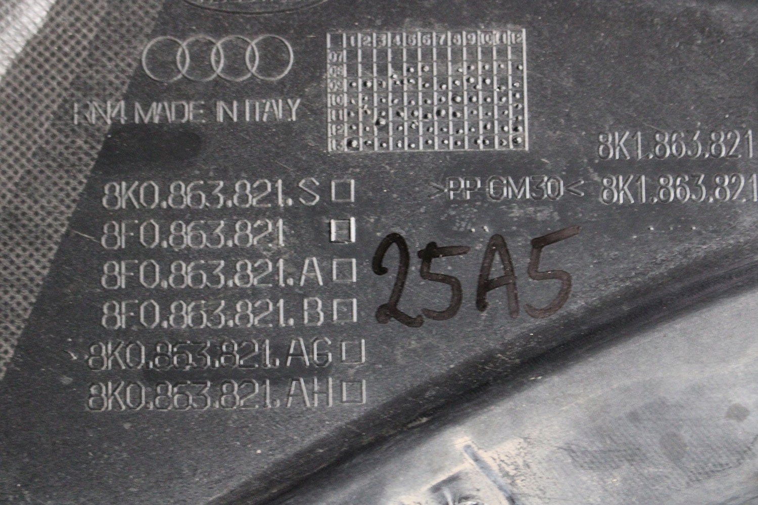 Оригинальный каталожный номер: 8K1 863 821, 8K1 863 821 B, 8K1 863 822 S, 8K0 863 325, 8K1 863 822 P, 8K0 863 325 A, 8K1863821, 8K1863821B, 8K1863822S, 8K0863325, 8K1863822P, 8K0863325A