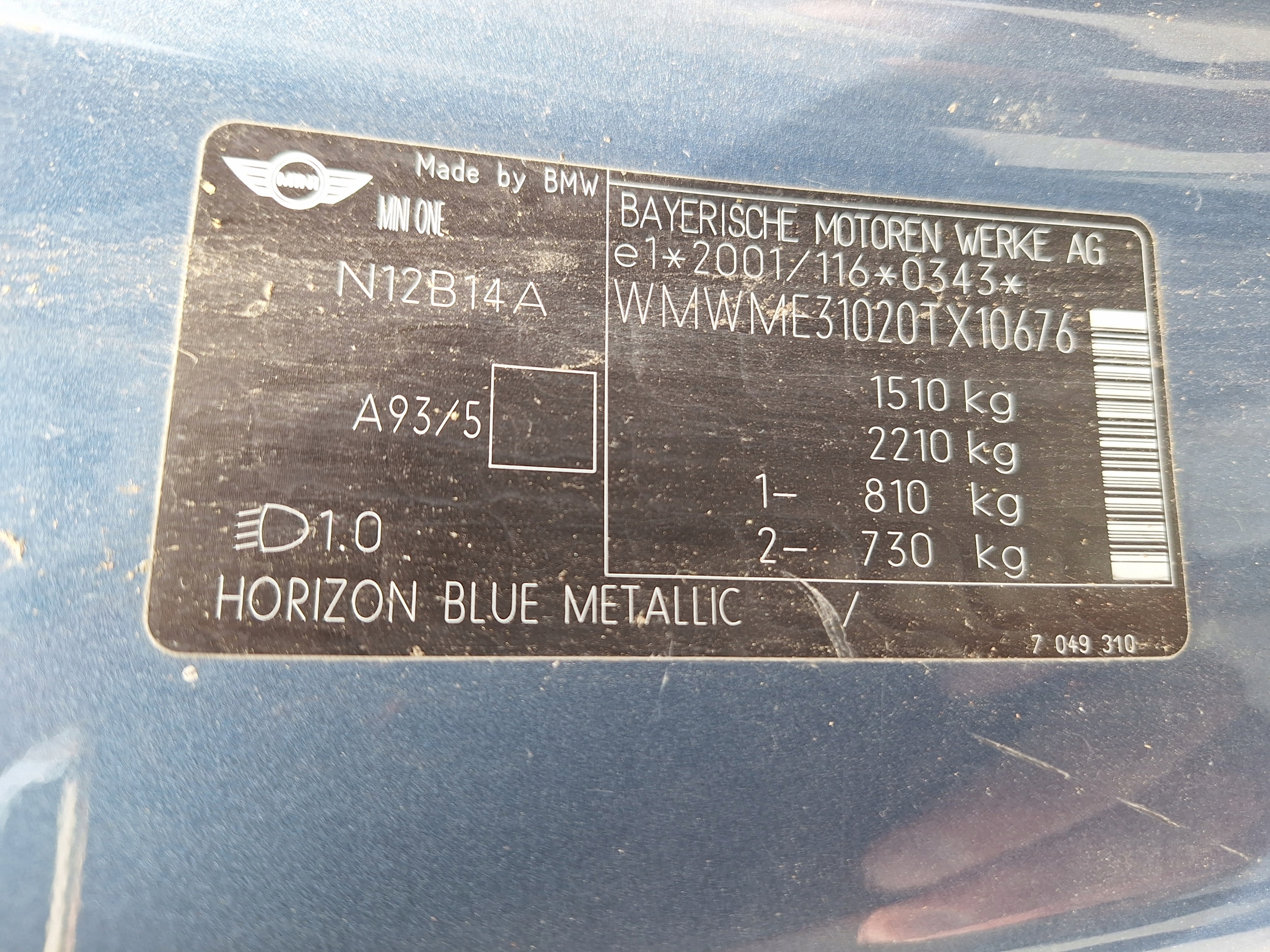 | Оригинальный каталожный номер: | MMN1201A6437, MINI-N ME31 AA |