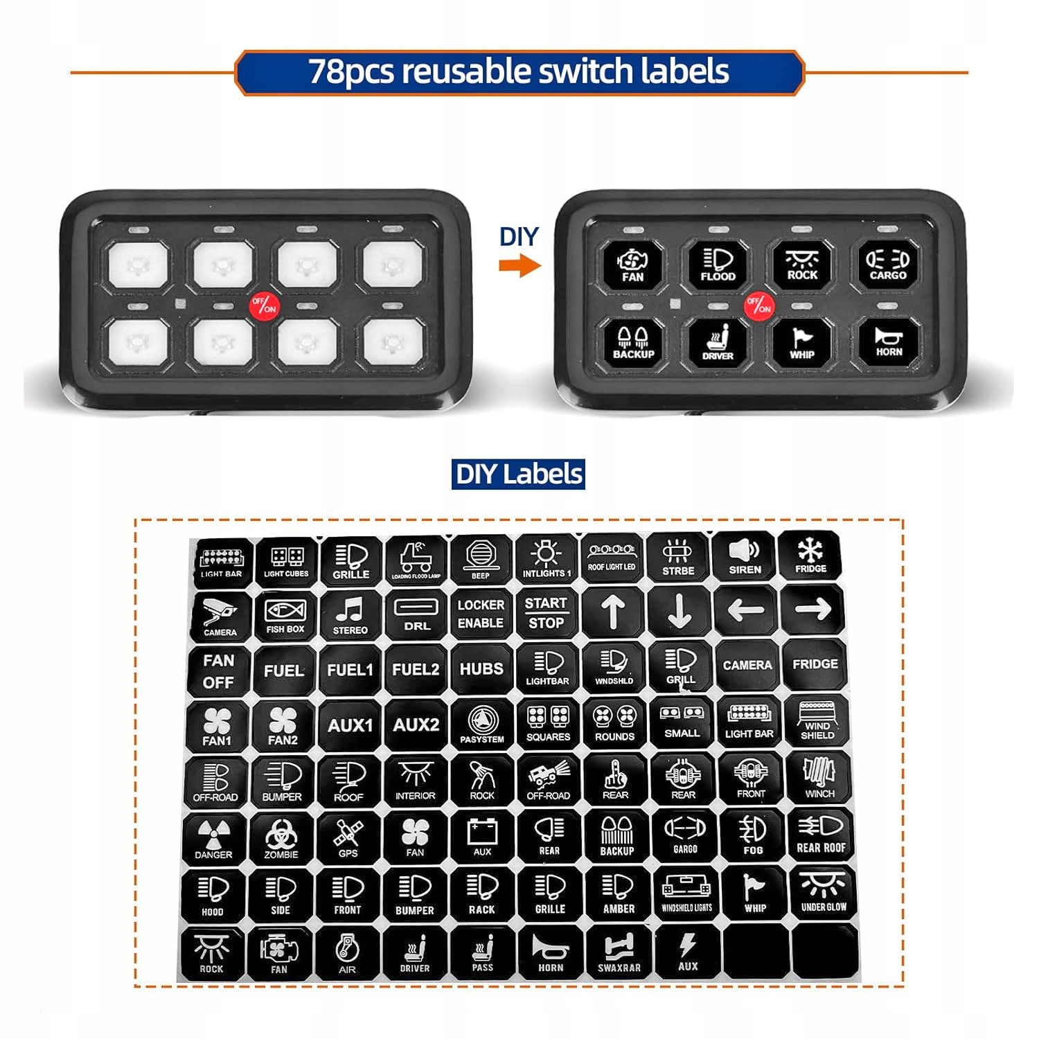 | Каталожный номер детали: | PANEL STEROWNIA 8 PRZEŁĄCZNIKÓW LED DIODA NIEBIESKA OFF ROAD NAKLEJKI KPL |