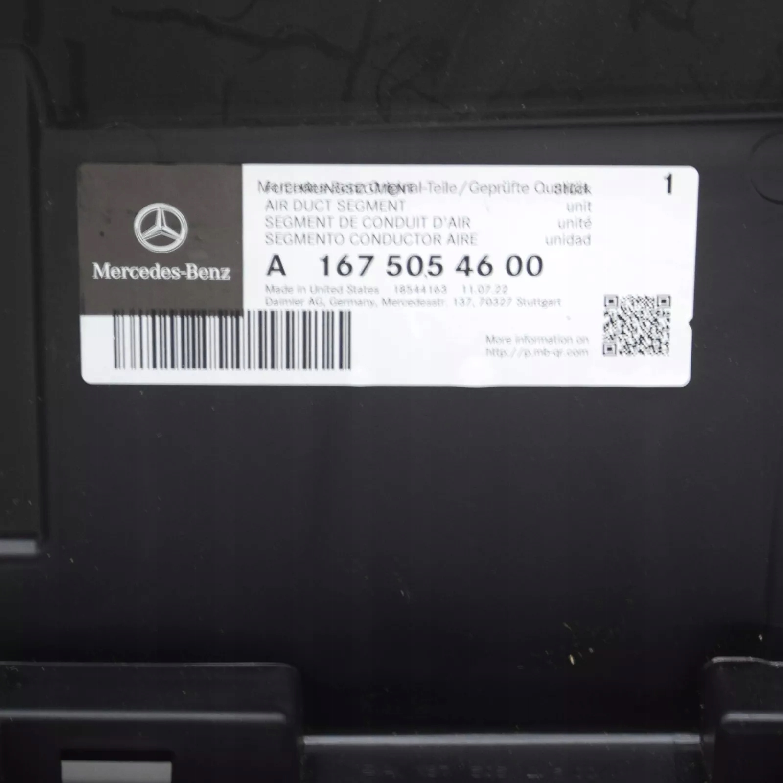 Mercedes-benz gle w167 нижний сегмент канал воздуха a1675054600 oem