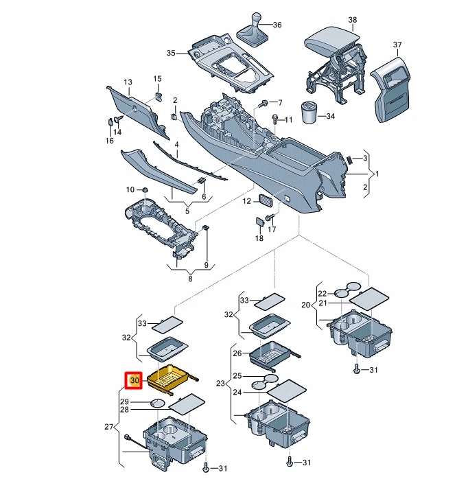 Audi q5 fy center console tray 80a864747a6ps oem