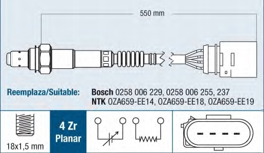 Каталожные номера заменителей: A.Z. Meisterteile AZMT-40-011-1015, A.Z. Meisterteile AZMT-40-011-1329, ABAKUS 120-08-231, CASCO CSN73TE8GS, FISPA 90182, FISPA 90182A2, HOFFER 7481561, LEMARK LLB209, LRT L0042B580, MAXGEAR 59-0067, NTK 92138, NTK 92428, NTK 95801, NTK 97459, WALKER PRODUCTS 250-24431, WALKER PRODUCTS 250-24495, WILMINK GROUP WG1013913, WILMINK GROUP WG1501035, WILMINK GROUP WG1501069, WILMINK GROUP WG1501073