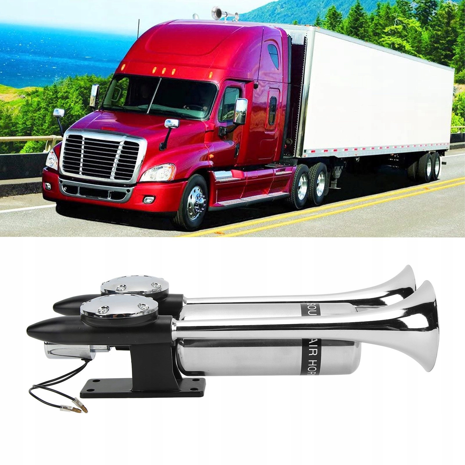 Клаксон сигнал пневматическая 300db хром компрессор 12/24v автомобильная