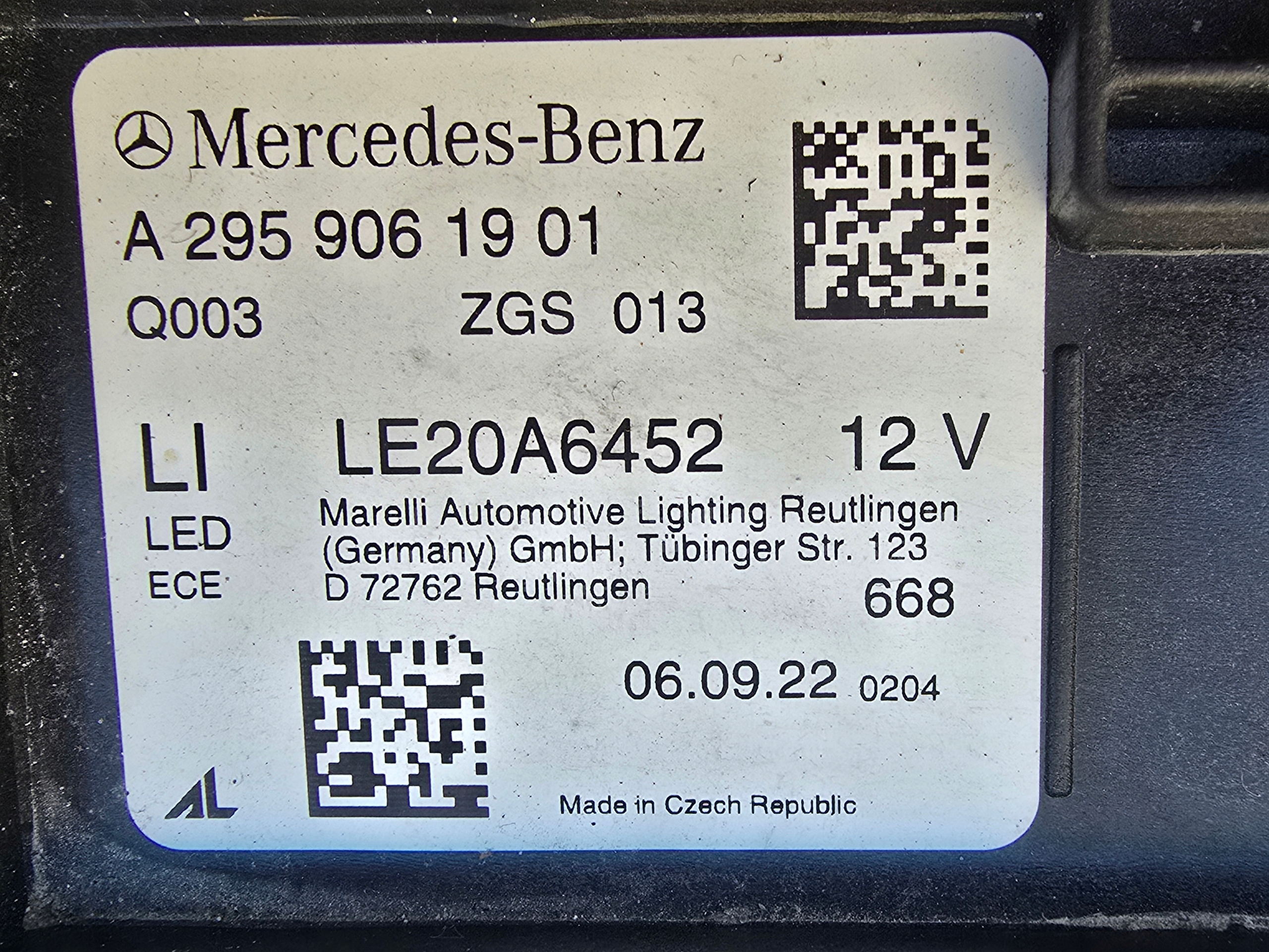 | Каталожный номер детали: | A2959061901, A2959062001 |