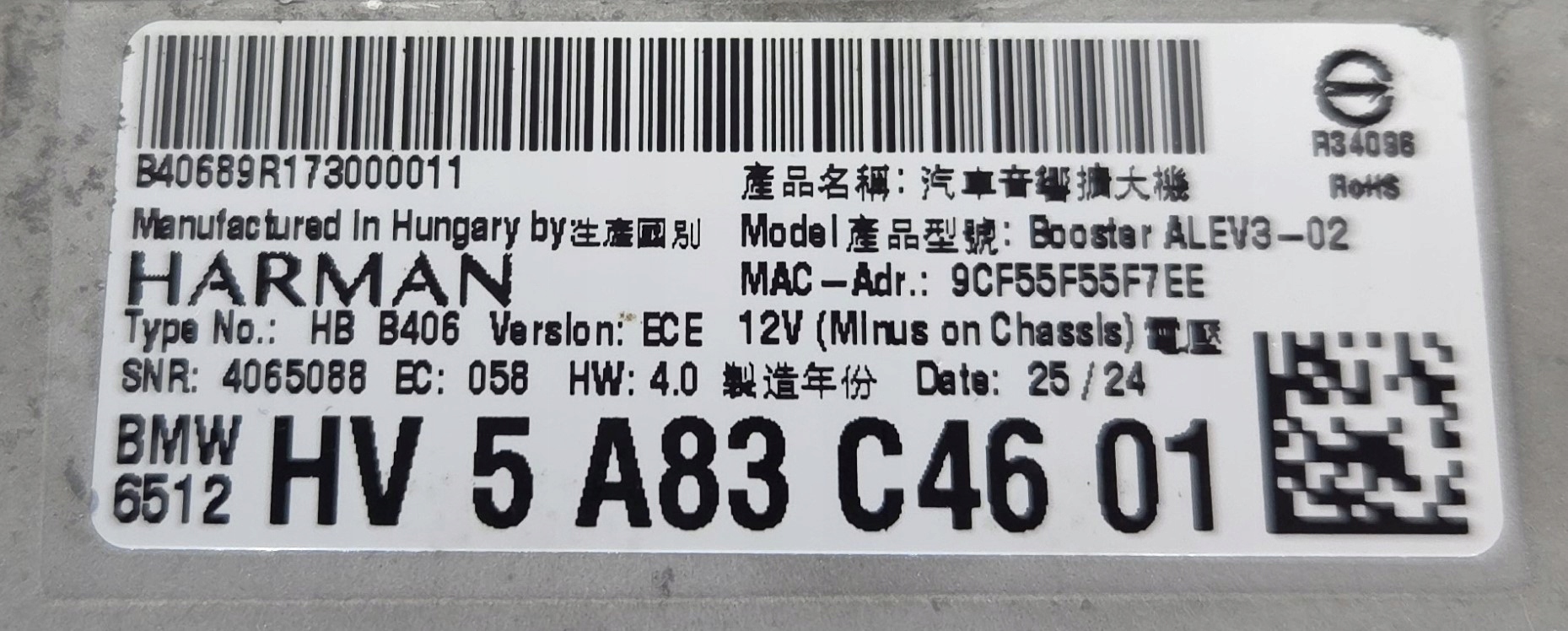 | Каталожный номер детали: | 5A83C46, BMW |