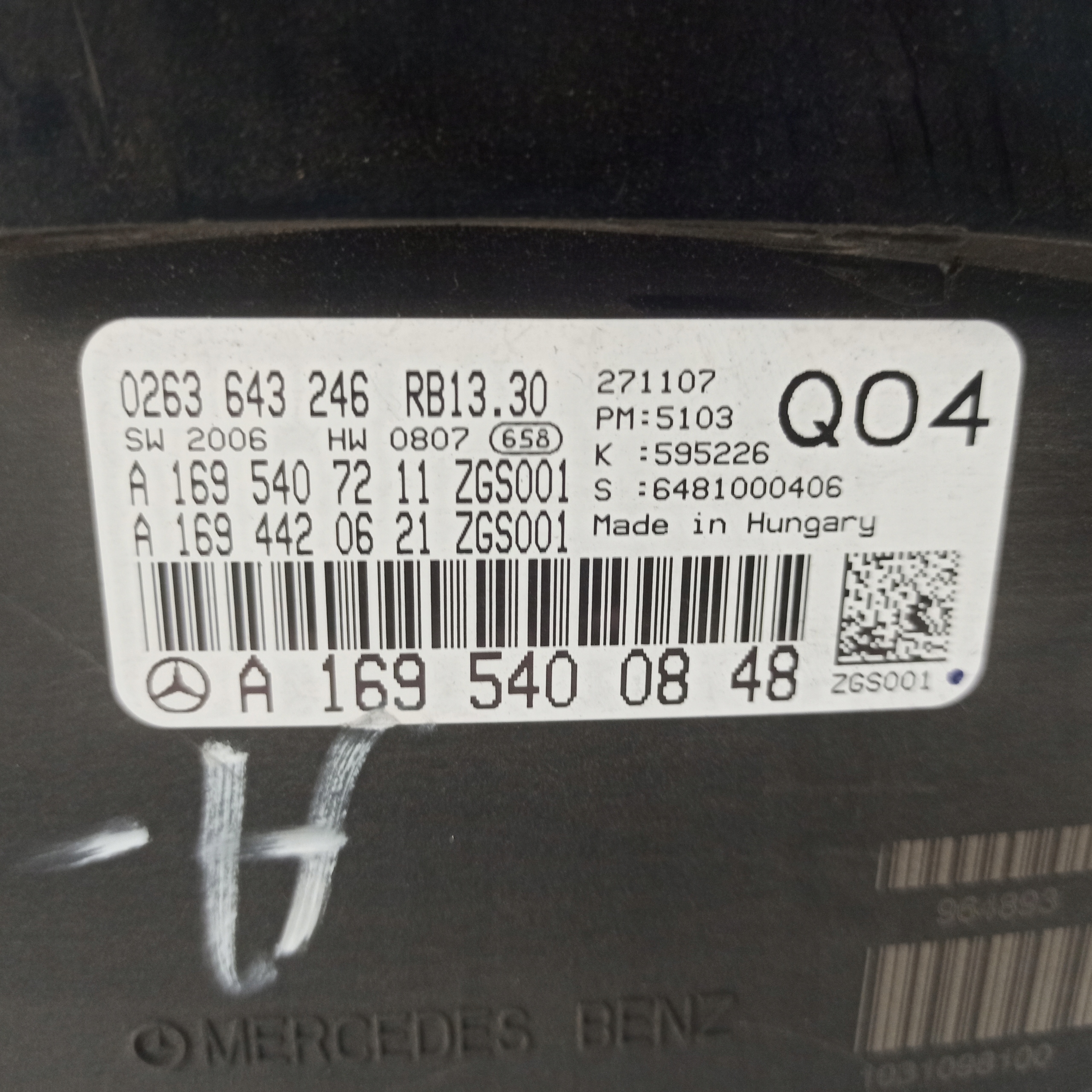 Каталожный номер детали: MERCEDES, W169, LICZNIK, ZEGARY, A1695400848