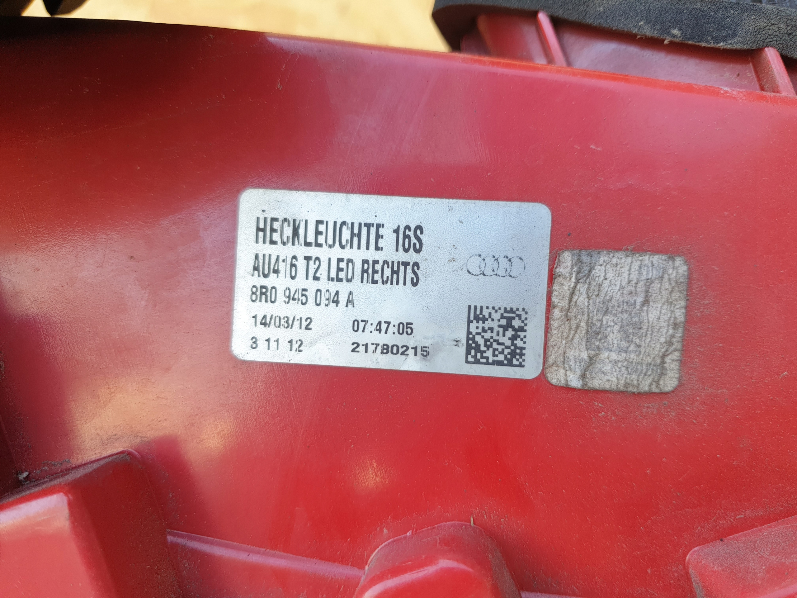 | Каталожный номер детали: | AUDI Q5 8R LAMPA PRAWY TYŁ LED 8R0945094A |