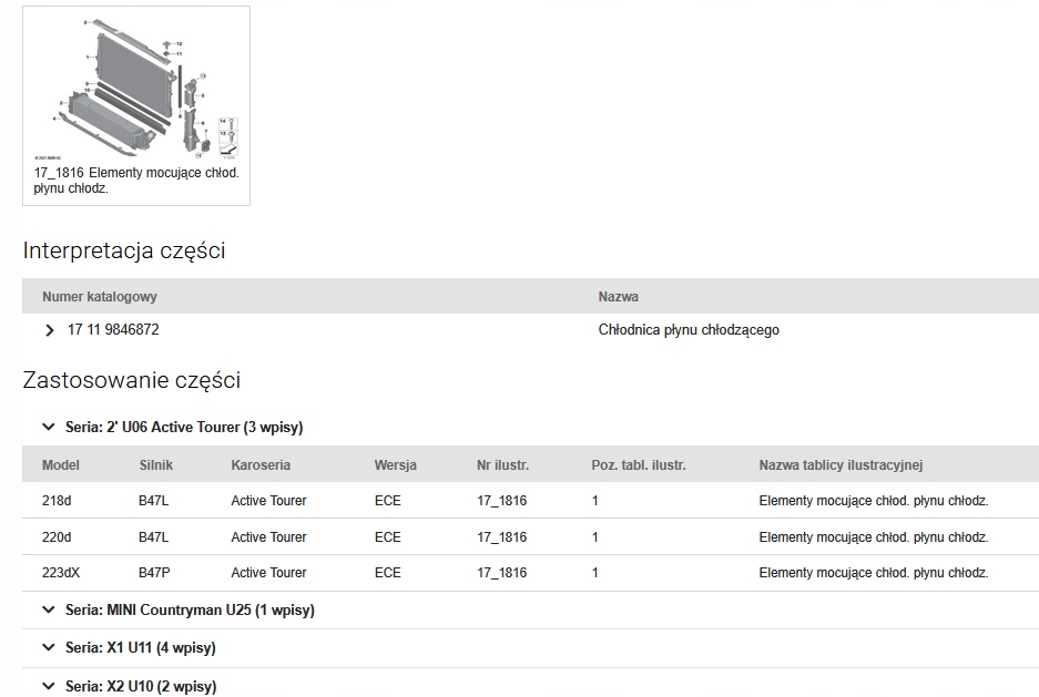 | Каталожный номер детали: | CHLODNICE, WENTYLATOR, KOMPLET, BMW, 218d, 223dX, U06, , X1, U11, 18d, 20dX, 23dX, U10, MINI, U25, BMW |