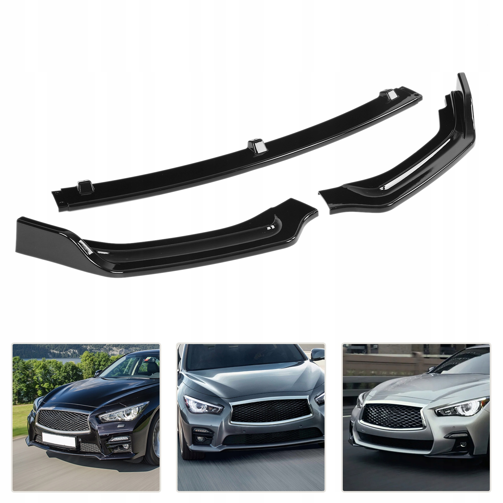 3pcs gloss black передняя часть drumiper сплиттер замена warg dla infiniti zj