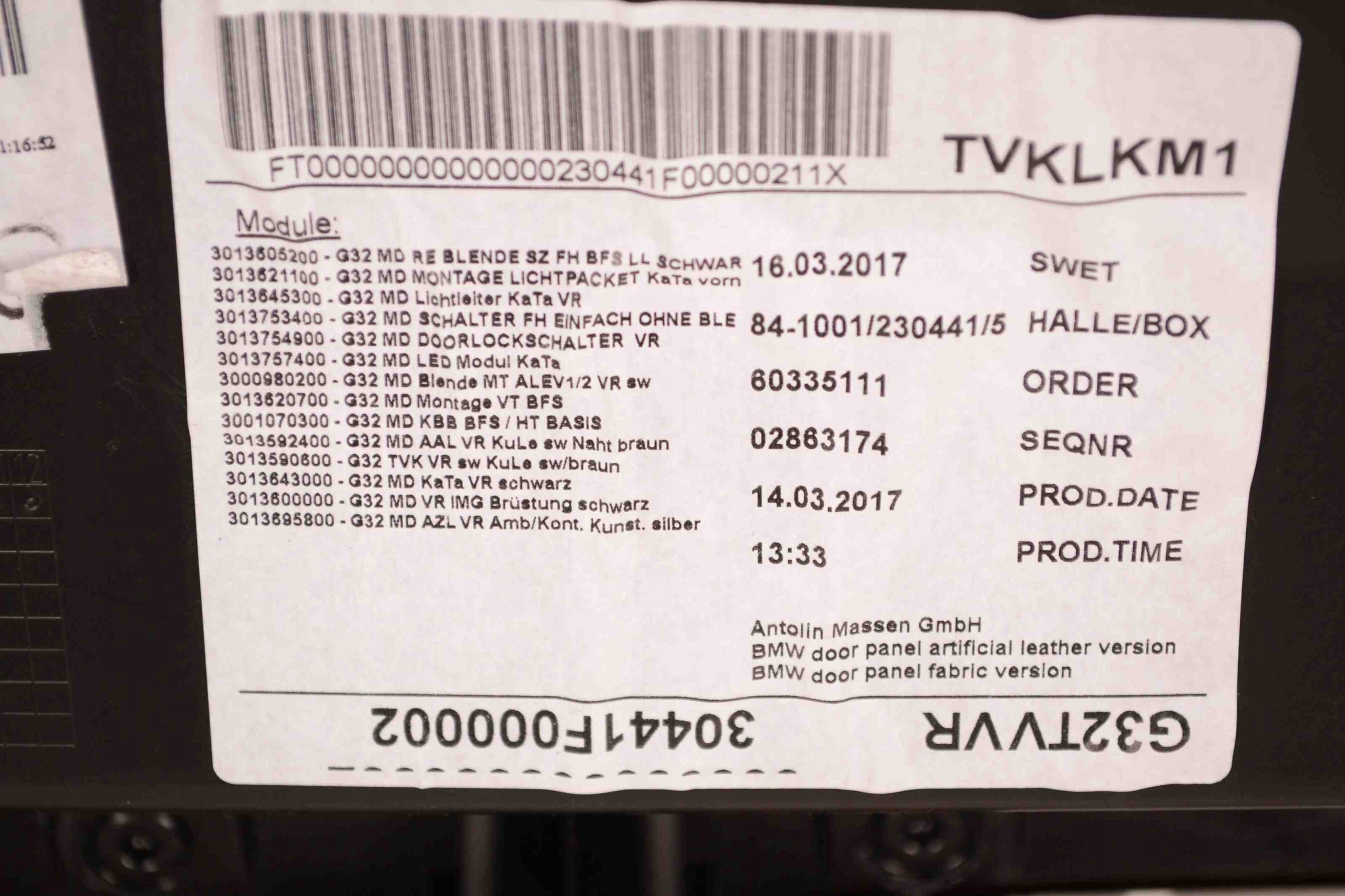 Обшивка передних правых дверь bmw 6 gran turismo g32 7416876 10010735