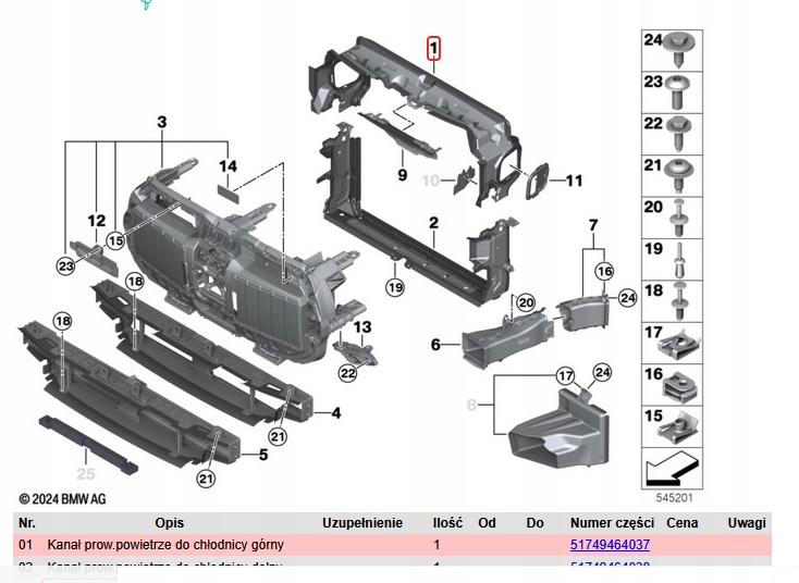 | Каталожный номер детали: | BMW 7 G70 G73 KIEROWNICA POWIETRZA WLOT GÓRNY PAS 9464037 ORYGINAŁ NOWA |