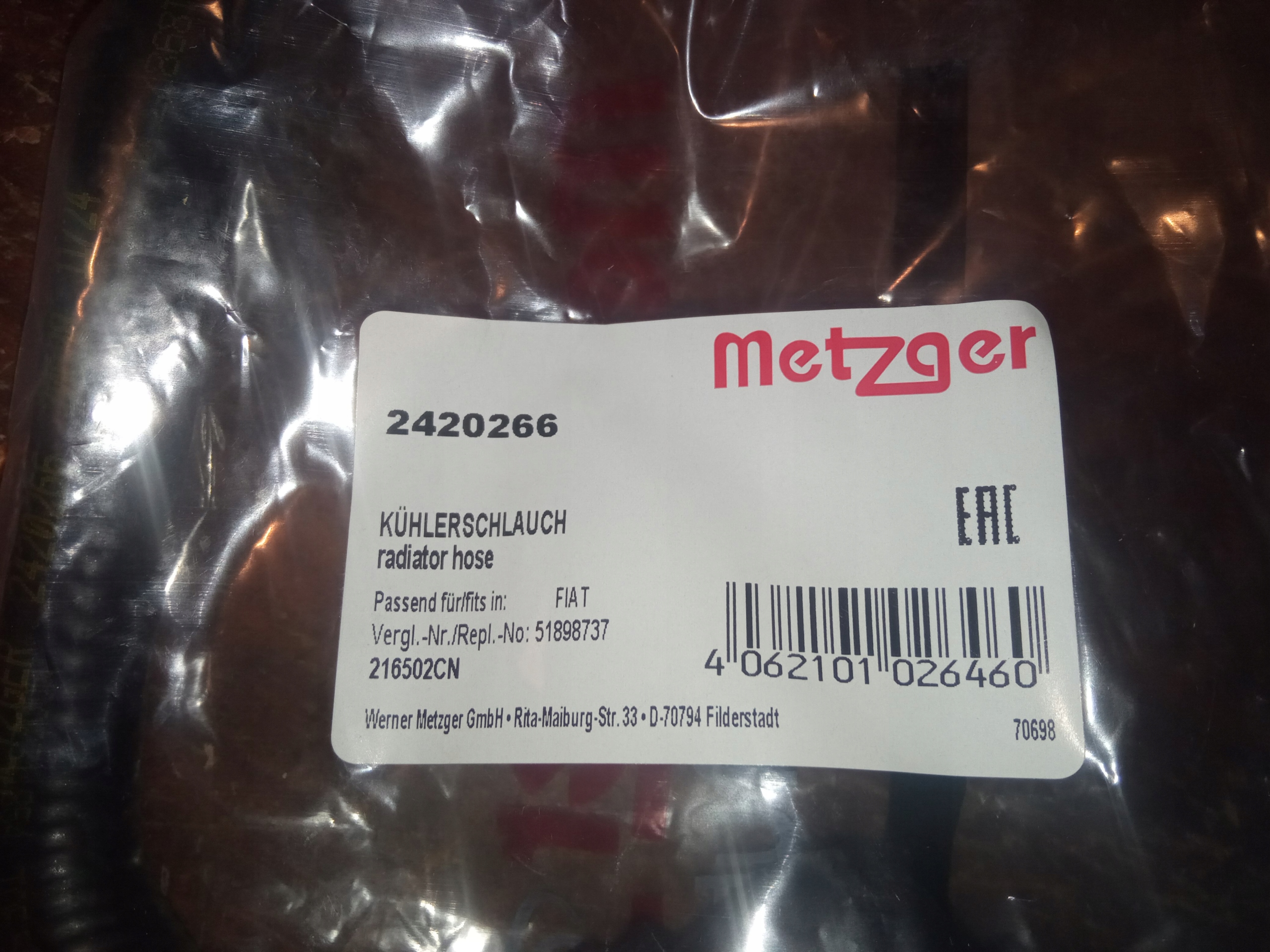 Есть ли гарантия на Metzger 2420266 шланг охлаждение?