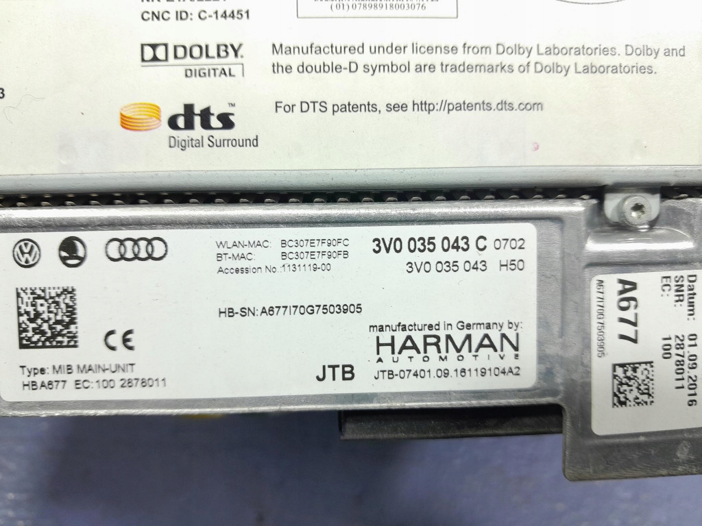 Skoda superb iii модуль мультимедийный считыватель навигации 3v0035043c