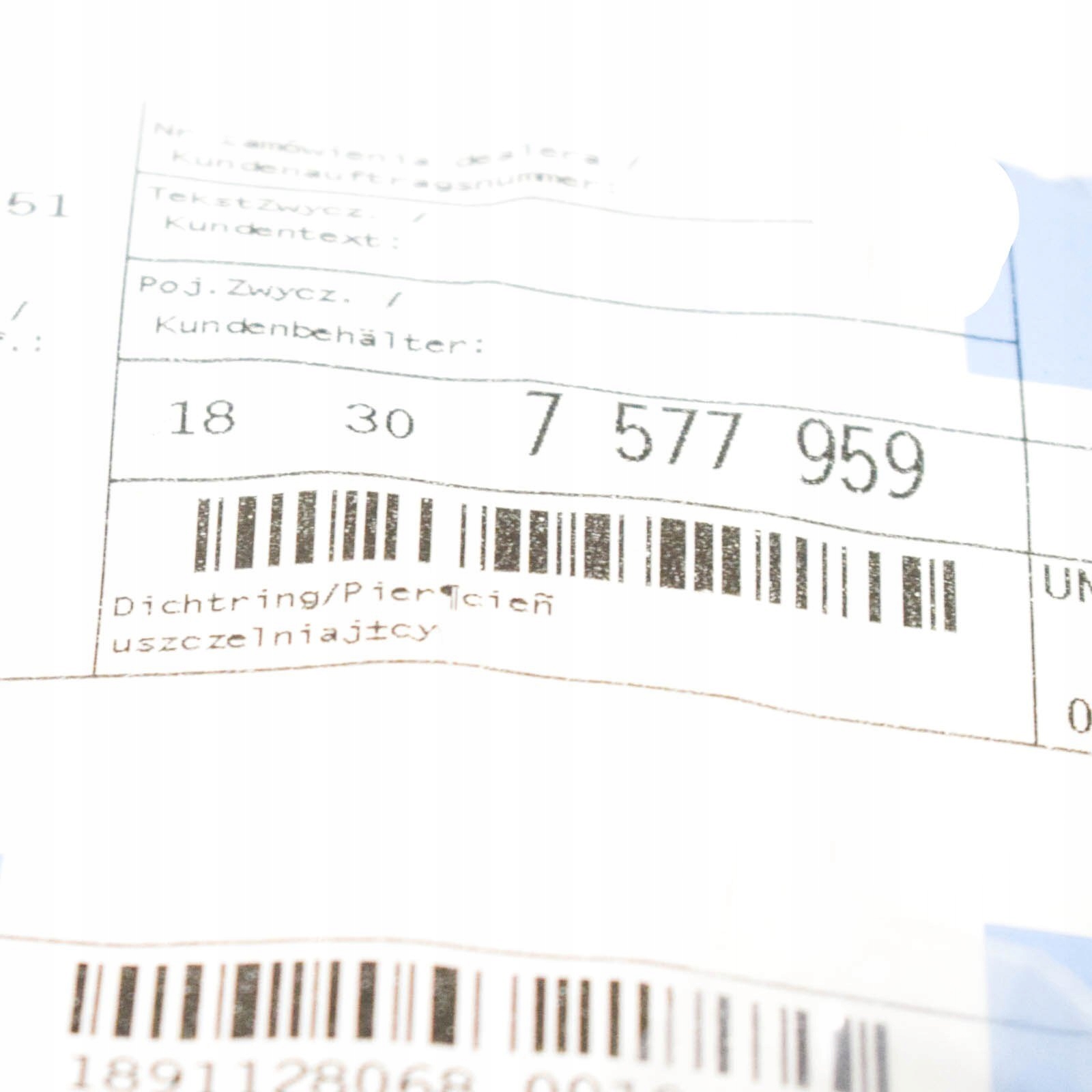 Оригинальный каталожный номер: 7577959, 18307577959