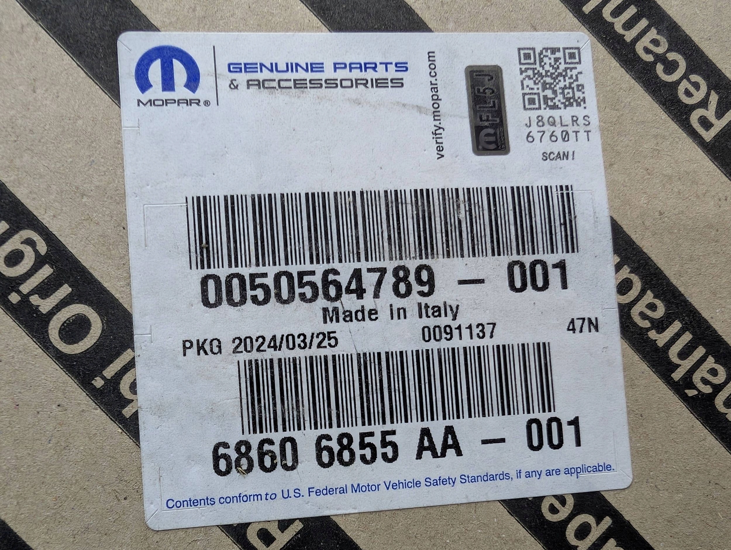 | Оригинальный каталожный номер: | 68606855AA |