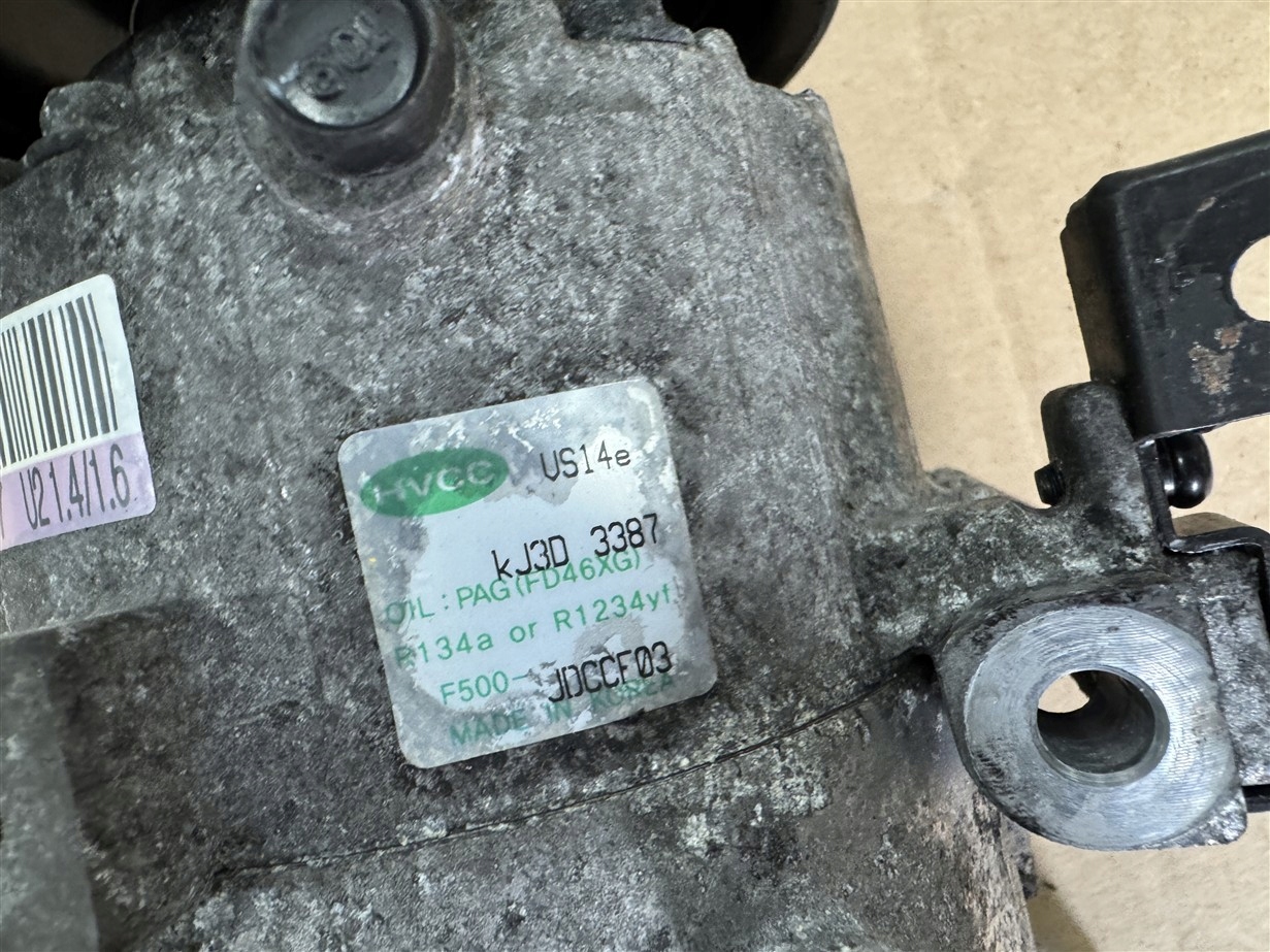 Каталожный номер детали: POMPA SPRĘŻARKA KLIMATYZACJI KOMPRESOR 1.6 CRDI D4FB EURO 6 UŁAMANA KOSTKA OD CZUJNIKA F500-JDCCF03 KJ3D-3387 A67 U21.4 KIA CEED PROCEED II 2 GT LIFT
