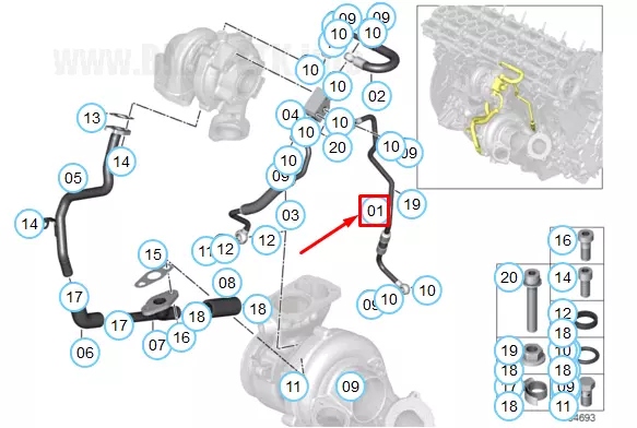 Bmw 5 e60 шланг подводящий масло do турбонагнетателя 11427795970 7795970