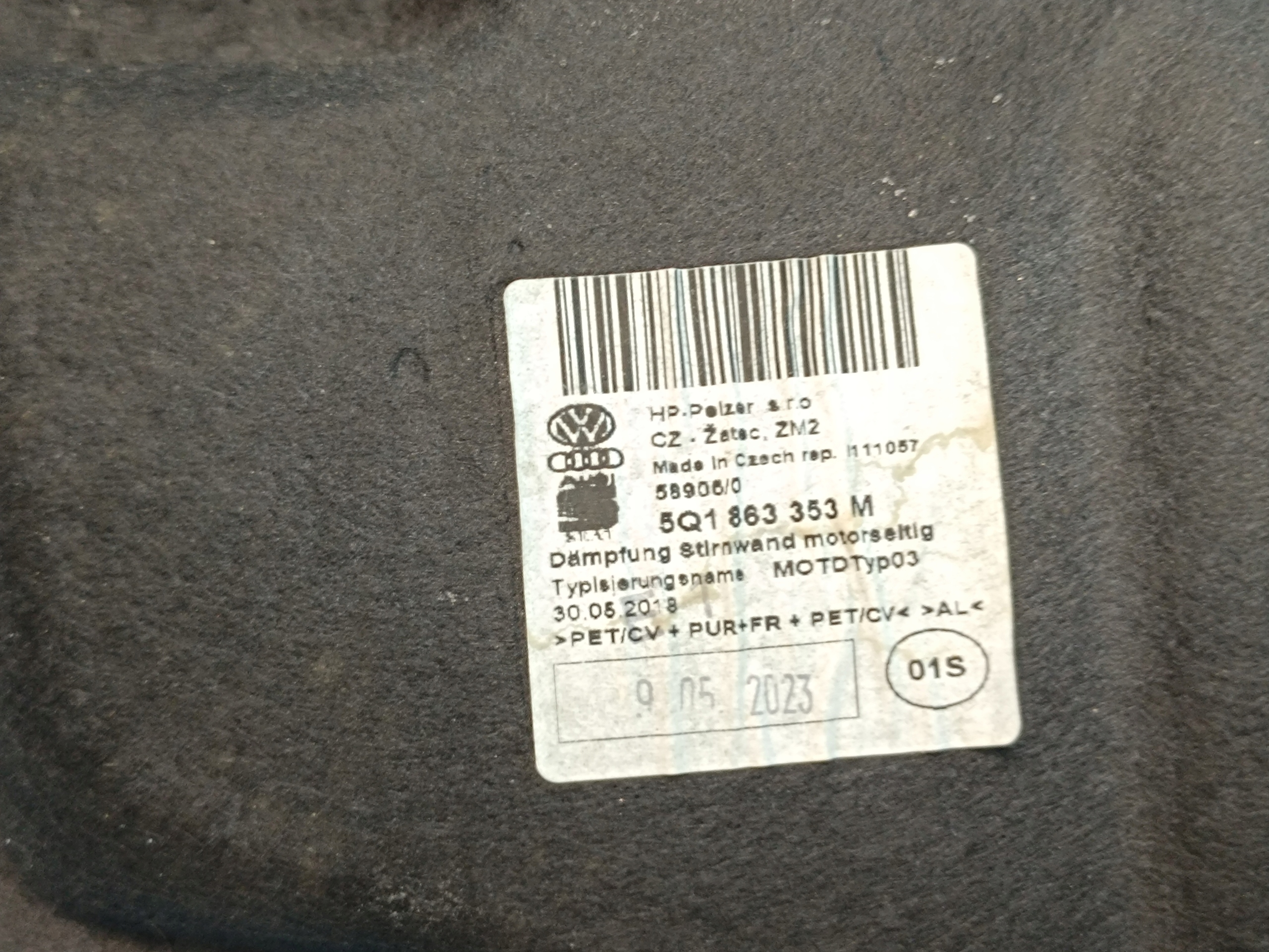 Skoda karoq lift 1.5 tsi 2023 r шумоизоляция стены перегородки 5q1863353m