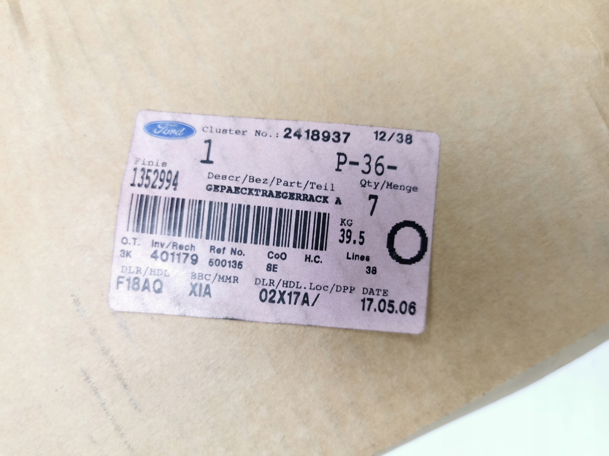 Багажник крышный, балка ford fiesta 01-08 fusion 01-12 оригинальный номер 1352994