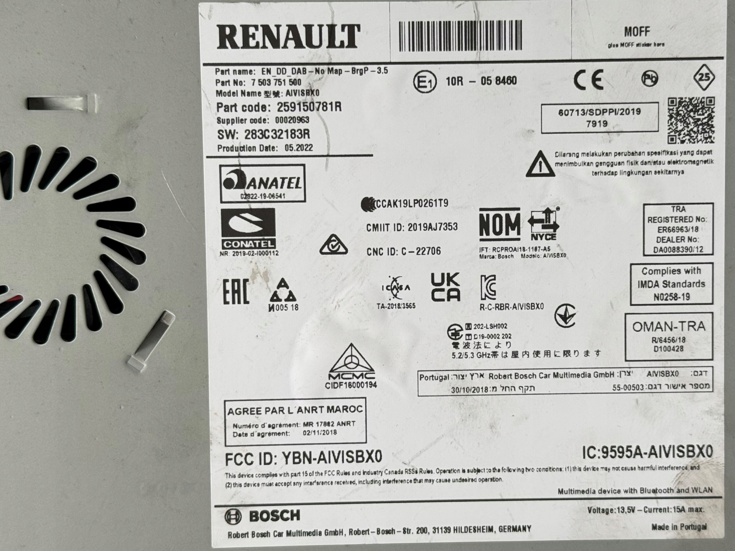 | Каталожный номер детали: | CZYTNIK, RADIO, NAWIGACJA, RENAULT, CLIO, V, 259150781R |