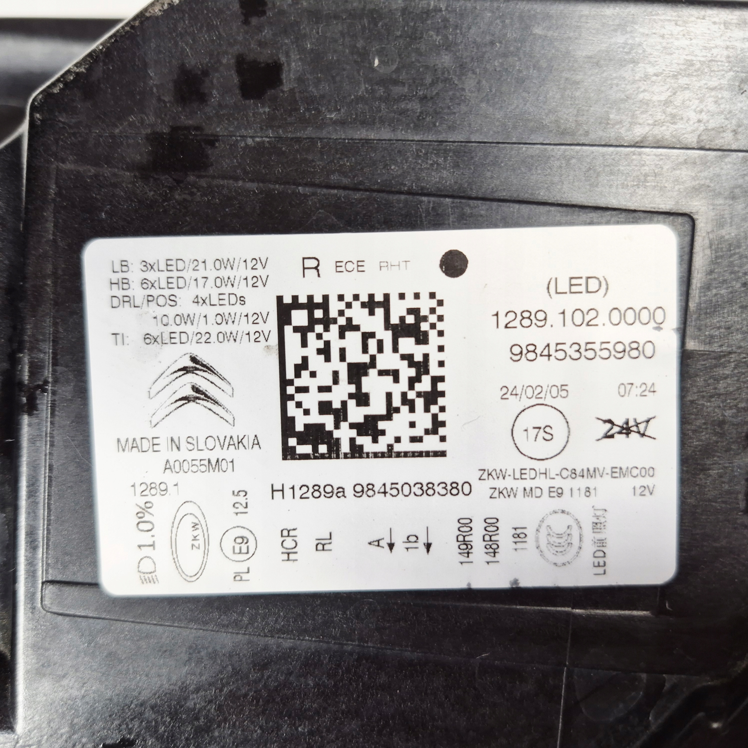 Citroen c5 aircross lift 22-25 лампа led передняя правая 9845355980