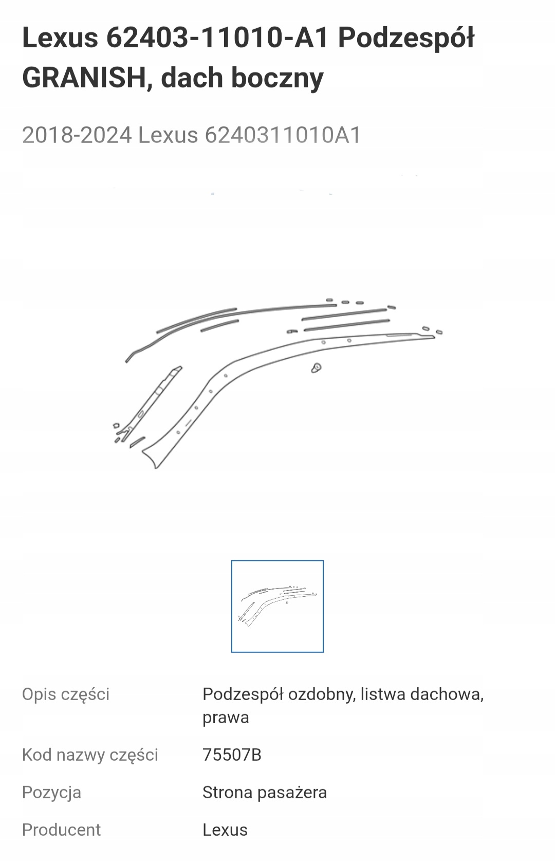 Как проверить совместимость Правая молдинг кровельная lexus lc500h 62403-11010 с моим авто?