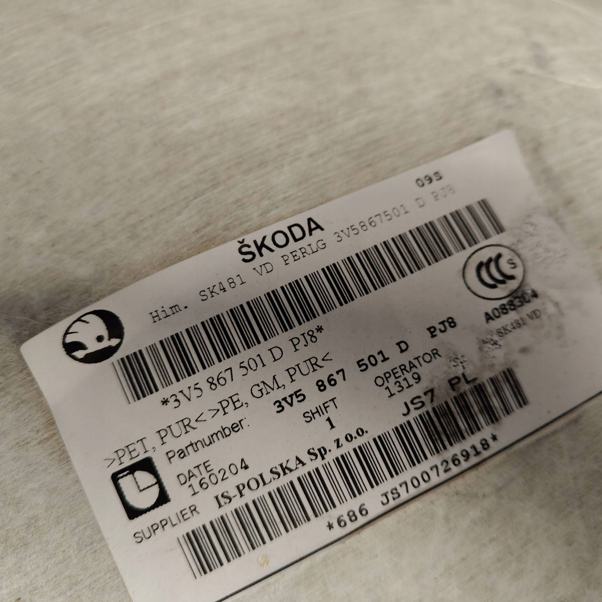 Производитель запчасти: skoda оригинальный номер