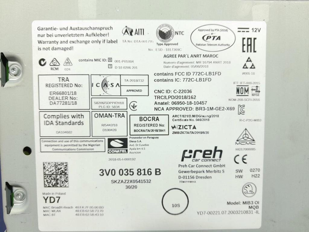 Как проверить совместимость Skoda kodiaq 1 рестайлинг 19- радио блок управляющий 3v0035816b с моим авто?