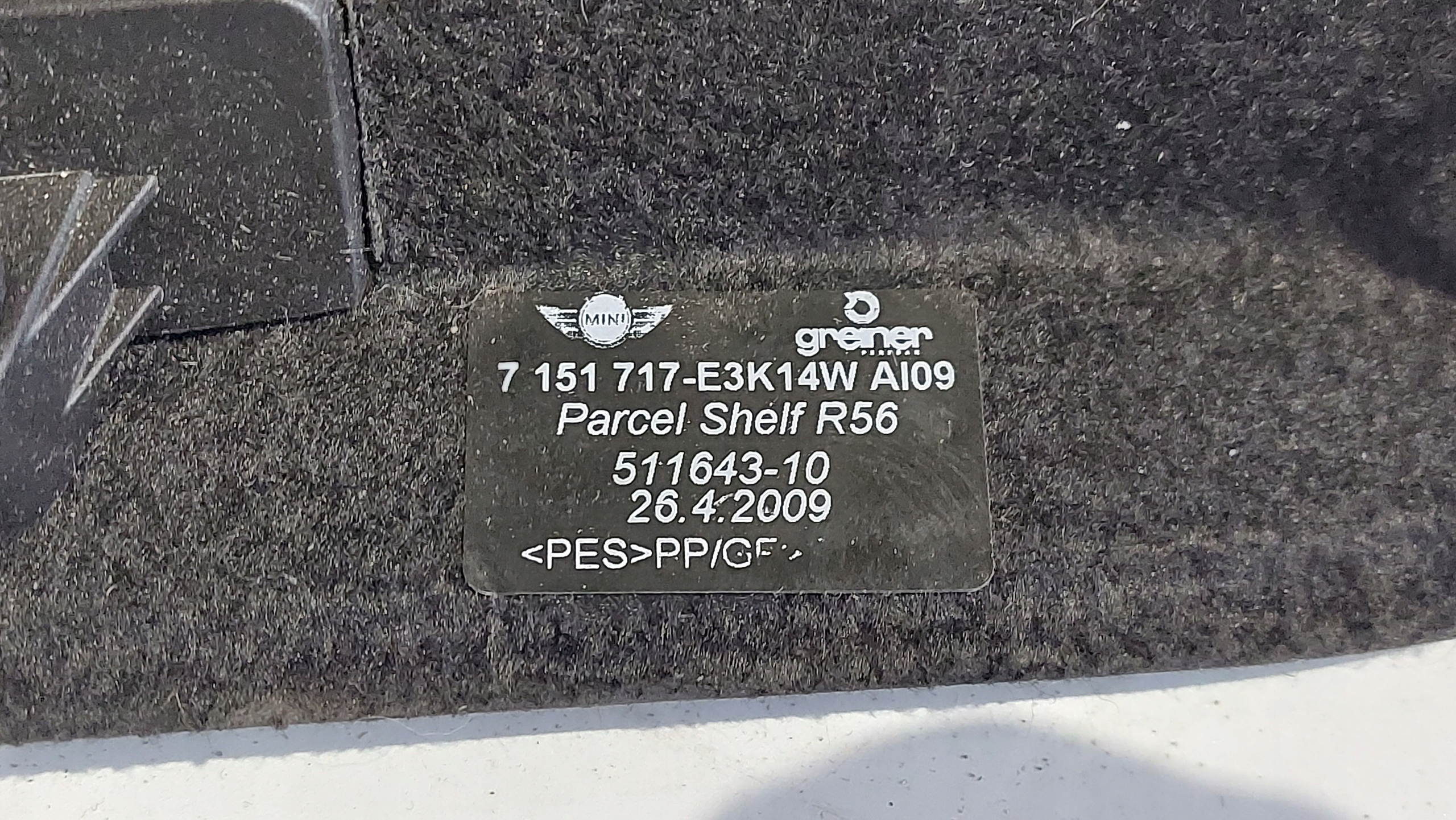 Каталожный номер детали: MINI COOPER I R56 półka bagażnika 7151717 KD522