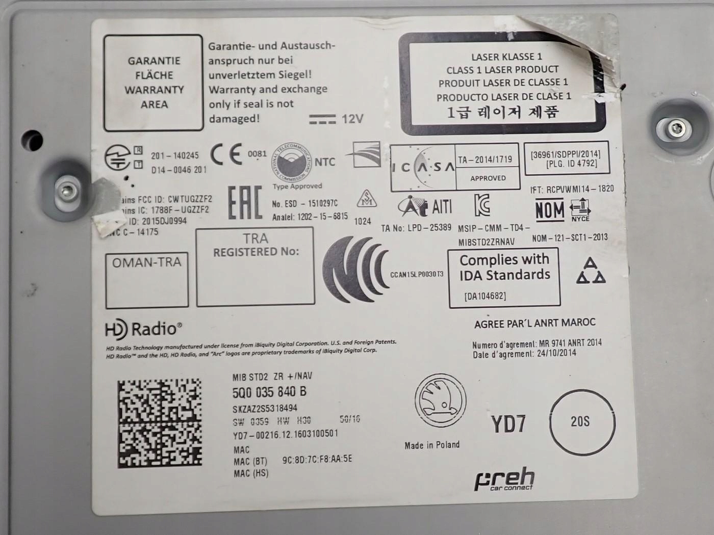 Vw golf vii модуль mib3 mqb37w 5h0035820h