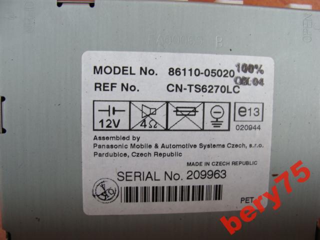 Каталожный номер детали: TOYOTA AVENSIS 03r RADIO CD NAVIGACJA NAWIGACJA