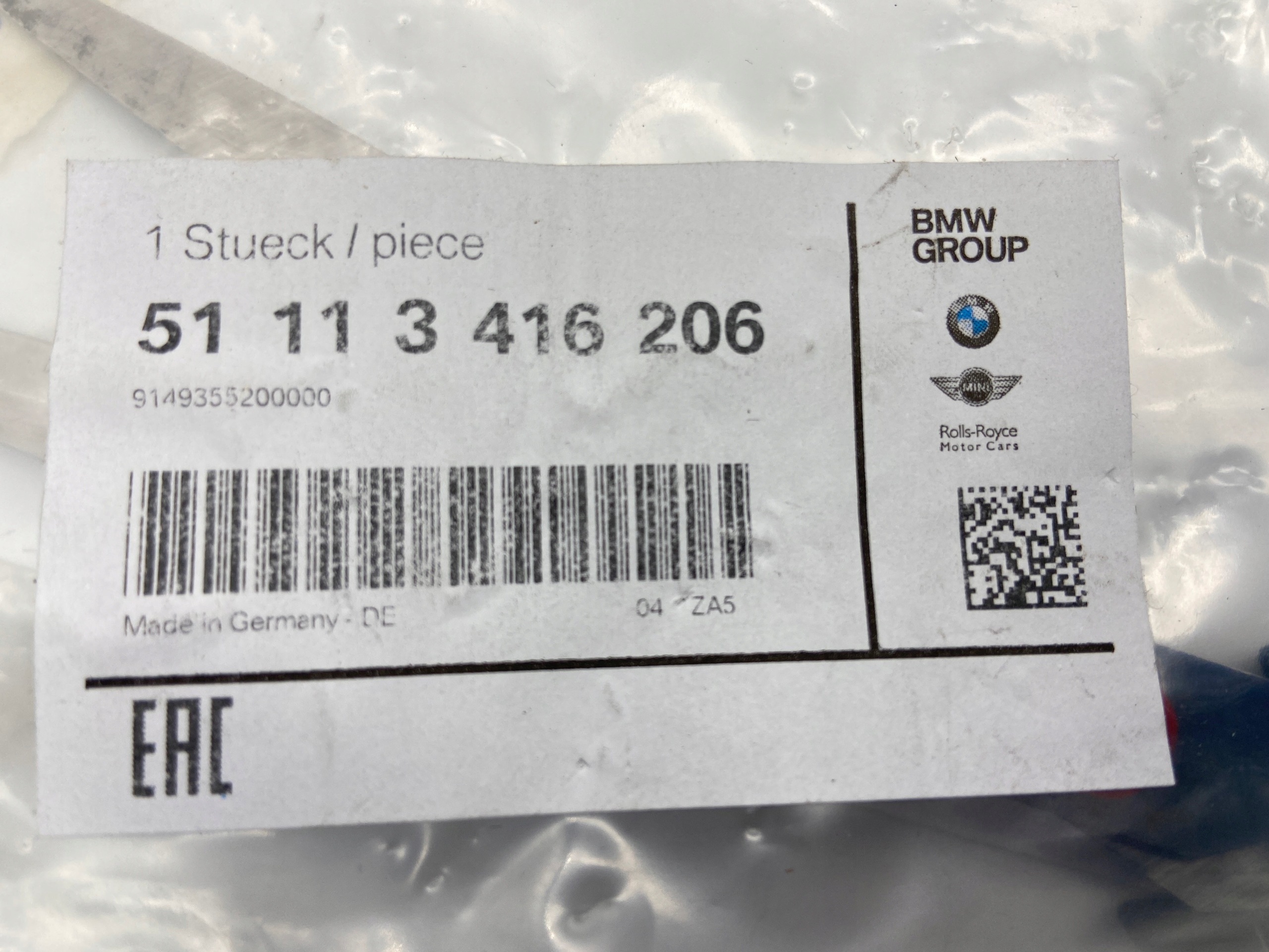 Каталожный номер детали: 51113416206