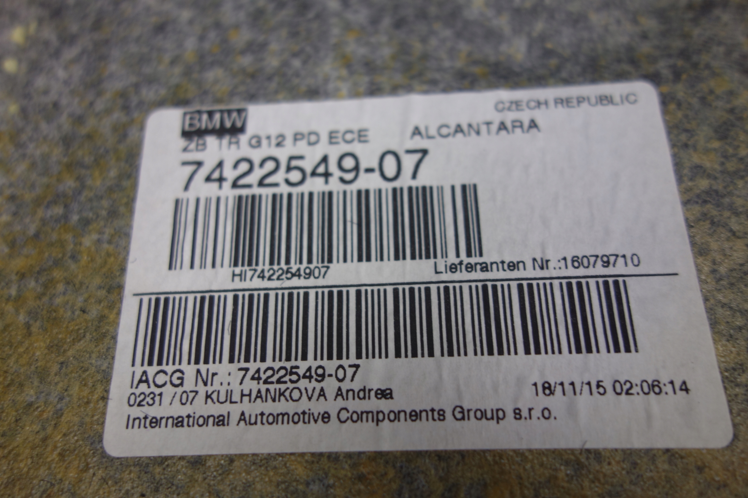 | Каталожный номер детали: | PODSUFITKA, HEADLINING, BMW, G12, PANORAMA, ALCANTARA |