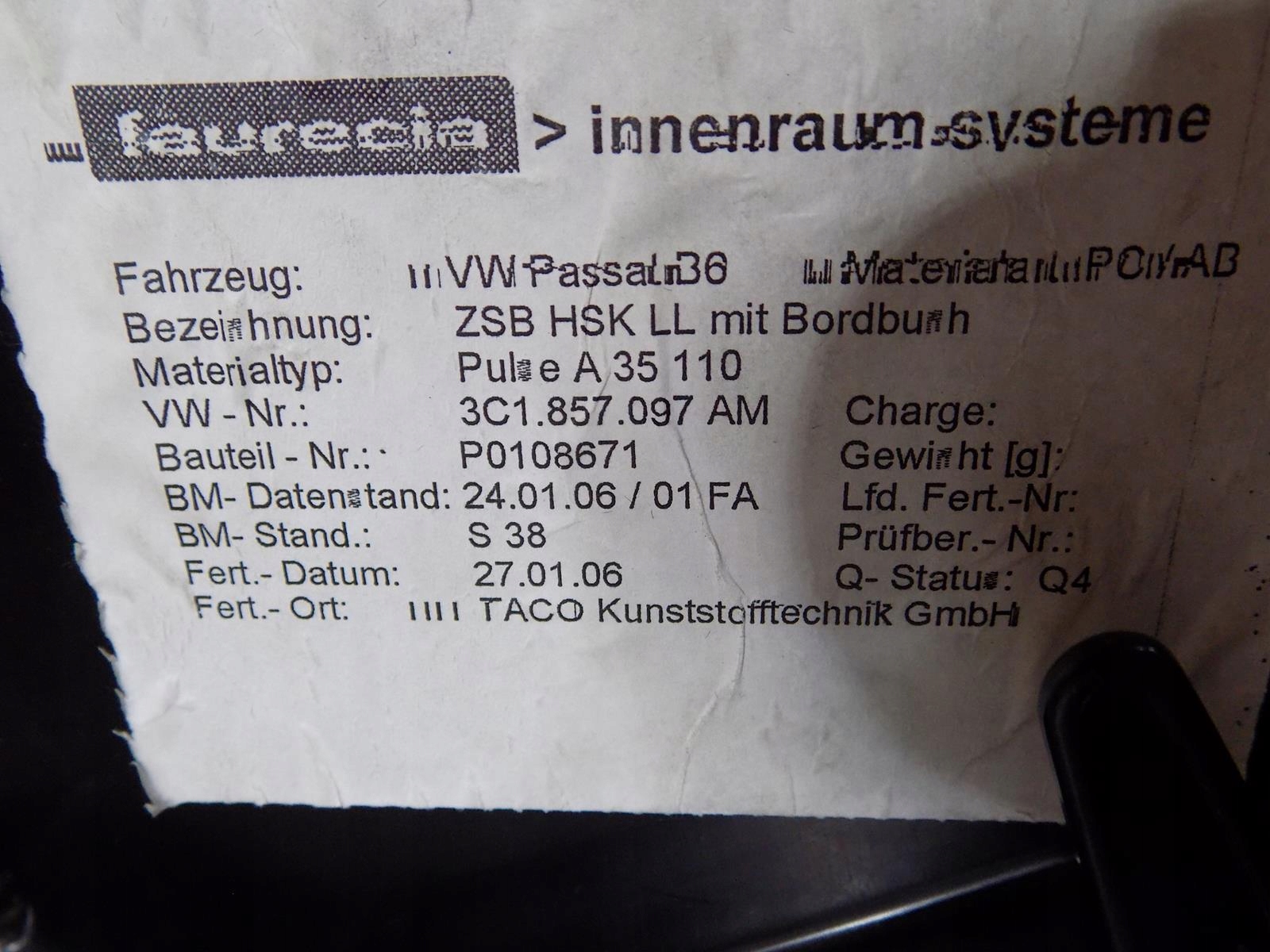 Vw passat b6 бардачок пассажира 3c1857097am