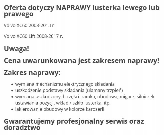 Volvo xc60 2008-2017 зеркало ремонт