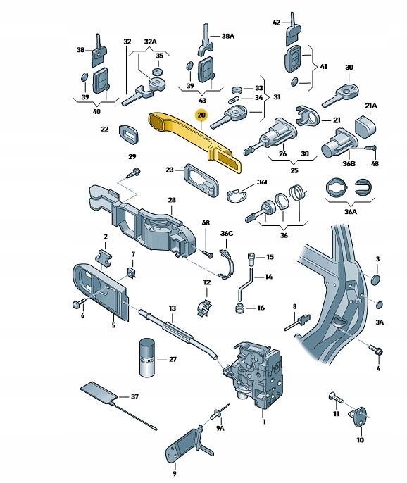 Ручка наружная дверь перед skoda fabia octavia с доставкой в ​​Украину