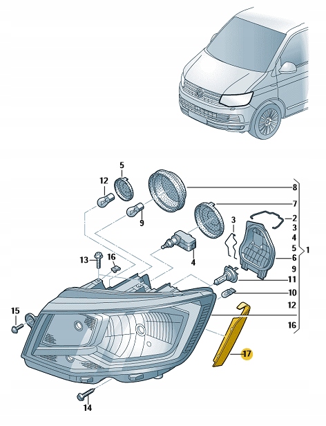 Прокладка фара vw transporter t6 правая aso