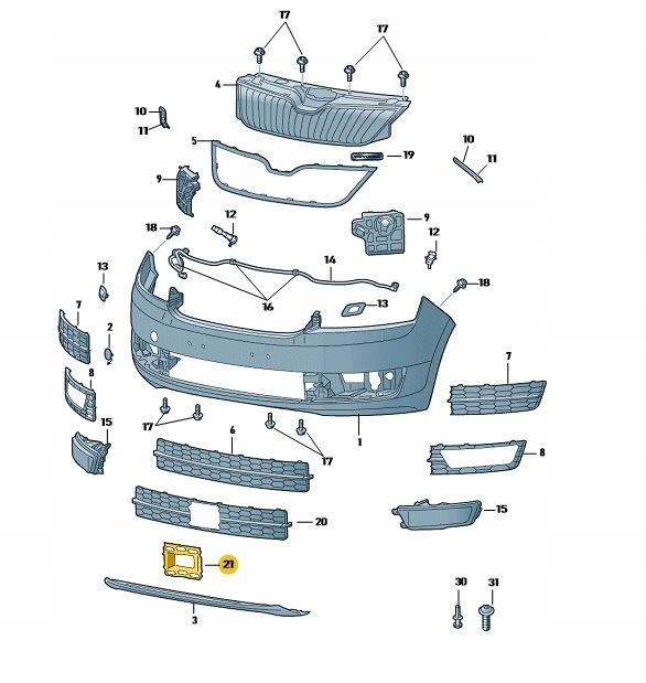 Заглушка радара acc решётки бампера skoda rapid