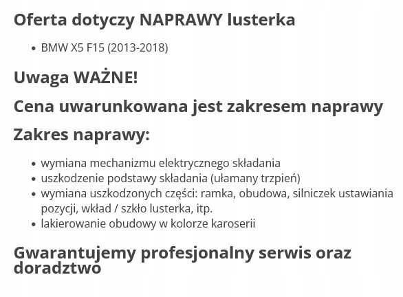 Bmw x5 f15 2013-2018 зеркало ремонт левая